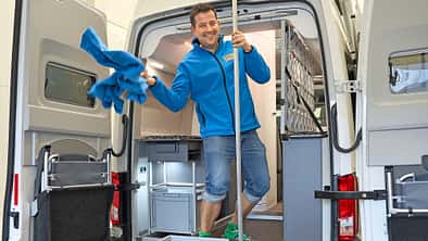 Effiziente Stauraumlösungen für den VW Grand California: Maßgeschneiderte Systeme von Remectro optimieren den Platz im Heckstauraum.