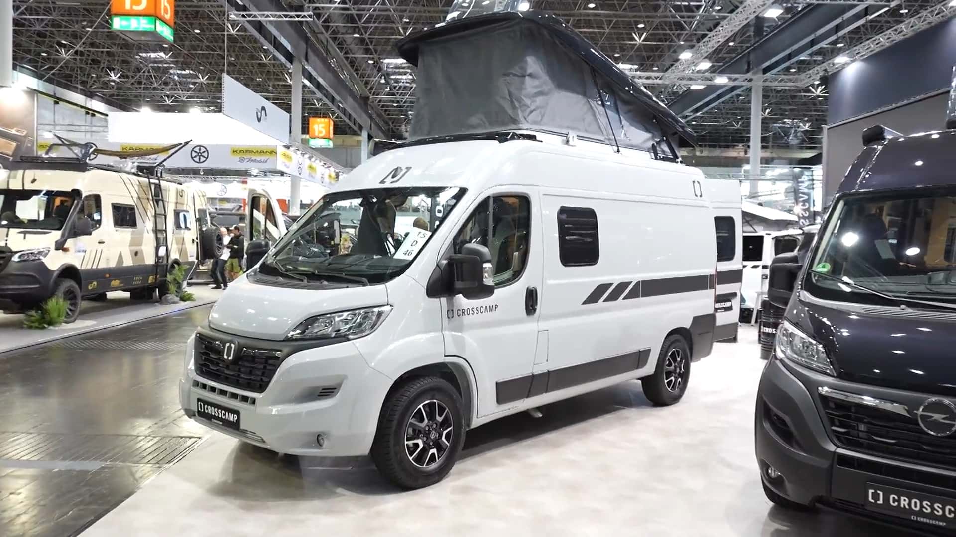 Alle neuen Campingbusse von Crosscamp können auf Wunsch ein Aufstelldach für zwei weitere Schlafplätze erhalten. Dieses bietet dann eine Liegefläche von 2,09 Meter auf 1,43 Meter. Im Dach gibt es dann USB-Buchsen, Ablagen, eine Kaltschaummatratze und einen Faltenbalg, der sich umlaufend öffnen lässt. Kosten soll das Aufstelldach 5.999 Euro zusätzlich.