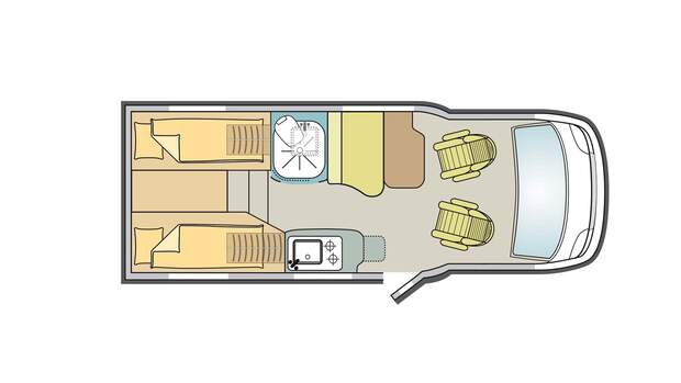 Die von Sunlight als Vans bezeichnete Baureihe umfasst insgesamt vier Modelle mit jeweils etwas unterschiedlichen Grundrissen. Zu zweit hat man die Wahl zwischen Doppel- oder Einzelbettengrundriss, wer noch zusätzliche Personen unterbringen will bekommt im V 60 und V 67 S optionale Schlafmöglichkeiten im Essbereich gegen Aufpreis. Was alle Modelle gemeinsam haben ist das gute Stauraumangebot durch Kleiderschränke und Heckgaragen.