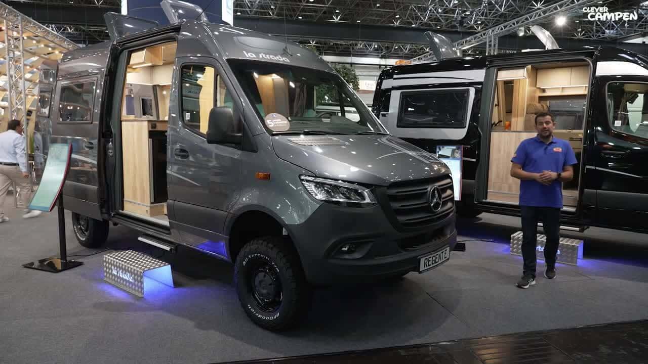 Der neue Kastenwagen basiert, wie alle Regent-Modelle von La Strada, auf dem Mercedes Sprinter mir Heckantrieb. In Serie kommt das Fahrzeug mit 3,5 Tonnen zulässigem Gesamtgewicht, 160 PS und Automatikgetriebe, 190 PS sind optional möglich. Auch als Allradmobil, wie bei dem hier gezeigten Modell, ist der Regent E erhältlich.