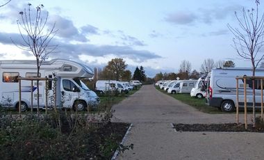 Gebührenpflichtiges Stellplatz für 65 Mobile am Ortsrand von Giffaumont-Champaubert. Der Stellplatz liegt in Seenähe und auf einem für Reisemobile angelegten und ausgewiesenen Areal. Teilweise unebener und teilweise schattiger Platz. Teils befestigter, geschotterter und sandiger Untergrund. In der Nähe: ausgewiesene Fahrrad- und Wanderwege. Preis pro Nacht inklusive zwei erwachsener Personen: 15,75 EUR. Bezahlung: Schranke. Strom, Wasser, Entsorgung Grauwasser, Entsorgung Chemie-WC, Hunde im Übernachtungspreis enthalten. Für die Buchung wird eine CCP Karte oder die App benötigt. Natürlich die Mitgliedschaft vorausgesetzt.