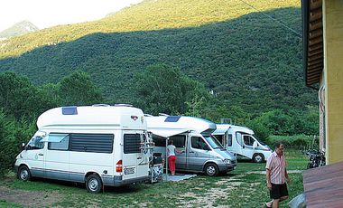 Gebührenfreier Stellplatz für 6 Mobile in Brentino Belluno-Rivalta. Der Stellplatz liegt in Flussnähe und an einer Gaststätte. Überwiegend ebener Untergrund, kein Schatten. Geschotterter Untergrund. Am Platz: Restaurant, Frischwasser, Strom, WC, Hunde erlaubt. Einkehr obligatorisch.