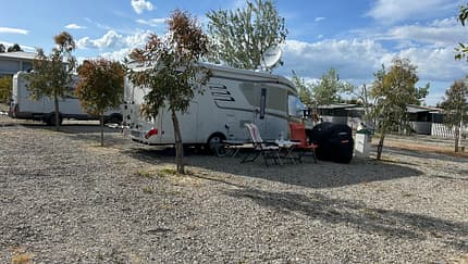 Stellplatz für 10 Mobile außerhalb von Crotone. Der Stellplatz liegt in Meernähe und auf einem für Reisemobile angelegten und ausgewiesenen Areal. Überwiegend ebener Untergrund, kein Schatten. Geschotterter Untergrund. Am Platz: Strom. In der Nähe: Strand. Wasser, Entsorgung Grauwasser, Entsorgung Chemie-WC, WC, Dusche im Übernachtungspreis enthalten.