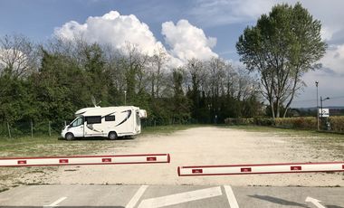 Gebührenpflichtiges Stellplatz am Ortsrand von Segusino. Der Stellplatz liegt in Flussnähe. Überwiegend ebener Platz. Asphaltierter Untergrund. Zentrum zu Fuß erreichbar. In der Nähe: ausgewiesene Fahrrad- und Wanderwege. Preis pro Nacht: 8 EUR. Bezahlung: Schranke. Strom, Wasser, Entsorgung Grauwasser, Entsorgung Chemie-WC, Hunde im Übernachtungspreis enthalten. V+E im Winter nicht verfügbar.