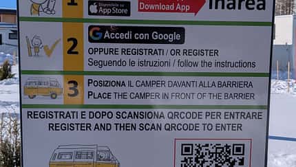 Gebührenpflichtiges Stellplatz für 40 Mobile am Ortsrand von SESTRIERE. Der Stellplatz liegt in den Bergen. Überwiegend ebener Untergrund, kein Schatten. Geschotterter Untergrund. Zentrum zu Fuß erreichbar. ÖPNV-Anschluss in der Nähe. Am Platz: Video-Überwachung, Barrierefrei, Stellplatz beleuchtet. In der Nähe: ausgewiesene Wanderwege, Skilift, Winterwandern. Preis pro Nacht: 20 EUR. Bezahlung: Smartphone-App. Strom, Wasser, Entsorgung Grauwasser, Entsorgung Chemie-WC, WLAN im Übernachtungspreis enthalten. V+E für Durchreisende: kostenlos. Saison: ganzjährig. Den Zugang zum Platz erhält man mittels QR Code. Zuvor muss die INAREA App auf dem Mobiltelefon installiert werden. Nach der Registrierung Personendaten + ID Card + KFZ Kennzeichen + Zahlungsmethode eingeben. Reservierung in der App ebenfalls möglich. Schrankenöffnung mittels QR Code möglich.