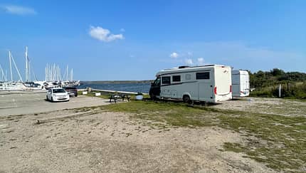 Gebührenpflichtiges Stellplatz für 6 Mobile am Ortsrand von Karrebæksminde. Zentrum zu Fuß erreichbar. Am Platz: WLAN, Frischwasser, Strom, Entsorgung Grauwasser, Entsorgung Chemie-WC, Dusche, Hunde erlaubt. In der Nähe: Hafen/Marina. Preis pro Nacht: 20 EUR. Bezahlung: Hafenmeister. Saison von Anfang Mai bis Ende Oktober.
