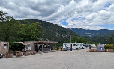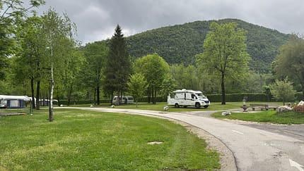 Gebührenpflichtiger Campingplatz am Ortsrand von Bohinjska Bistrica. Der Campingplatz liegt in Flussnähe und an einer Gaststätte. Überwiegend ebener, teilweise schattiger Platz. Untergrund mit Wiese, Rasen. Zentrum zu Fuß erreichbar. ÖPNV-Anschluss in der Nähe. Am Platz: Restaurant, Strom, Hunde erlaubt. In der Nähe: Strand, Kurse und Sportprogramm. Erwachsene Person: 16 EUR. Kurtaxe pro erwachsener Person: 1,30 EUR. Bezahlung: Betreiber. Wasser, Entsorgung Grauwasser, WC, Dusche, WLAN im Übernachtungspreis enthalten. Strom: 4,50 EUR.