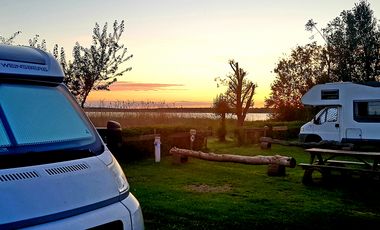 Der Campingplatz 'Camping am See' bietet Stellplätze zu Preisen von 31 EUR in der Hauptsaison und 29 EUR in der Nebensaison an. Zwei Erwachsene und Kinder sind im Preis inbegriffen, während für jeden weiteren Erwachsenen 6 EUR und für jedes weitere Kind 4 EUR berechnet werden. Die Kurtaxe ist für Erwachsene und Kinder inklusive. WLAN steht für 2 EUR pro Tag zur Verfügung, und Haustiere sind gegen eine Gebühr von 4 EUR erlaubt. Der Campingplatz ist von Anfang April bis Ende Oktober geöffnet, mit Anreisezeiten zwischen 15 und 20 Uhr. Der Standort befindet sich außerhalb, am See und im Wald, mit einer Anbindung an den öffentlichen Nahverkehr. Zu den Einrichtungen gehören ein bewachter Stellplatz, Brötchen- und Gasflaschenservice sowie beleuchtete Stellplätze. Wasser, Strom und Entsorgung sind inklusive, während die Ver- und Entsorgung für Durchreisende 5 EUR kostet. Es gibt einen Badesee, einen Strand und einen Spielplatz für Kinder. In der Umgebung können Besucher Klöster, Museen und Naturschutzgebiete erkunden sowie Aktivitäten wie Segeln, Surfen, Tauchen und Angeln nachgehen.