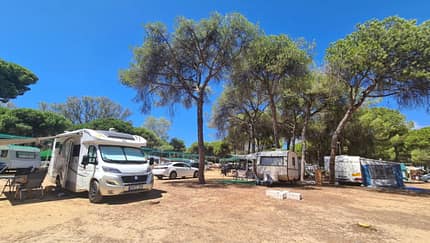 Gebührenpflichtiger Campingplatz in Isla Cristina. Überwiegend ebener, teilweise schattiger Platz. Befestigter und geschotterter Untergrund. Am Platz: Platzwart, Restaurant, Pool/Schwimmbad, Stellplatz beleuchtet, WLAN, Strom, Dusche. In der Nähe: Spielplatz. Wasser, Entsorgung Grauwasser, Entsorgung Chemie-WC, WC im Übernachtungspreis enthalten.