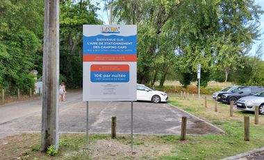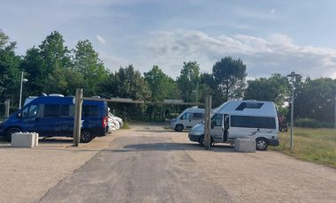 Gebührenpflichtiges Stellplatz für 5 Mobile in Audenge. Der Stellplatz liegt vor einem Campingplatz. Überwiegend ebener Untergrund, kein Schatten. Befestigter Untergrund. Am Platz: Stellplatz beleuchtet, Frischwasser, Entsorgung Grauwasser, Entsorgung Chemie-WC, Hunde erlaubt. Preis pro Nacht inklusive zwei erwachsener Personen: 10 EUR. Dusche im Übernachtungspreis enthalten. Wasser: 3 EUR/1 Tag. Maximaler Aufenthalt: 1 Nacht.