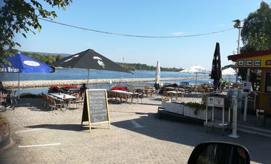 Die Lage direkt am Rhein ist Super, das wars aber schon. Die Aussage im Text Bariärefrei ist ein Witz (Wo ist der Sani-Container) und auf der Schotterstrasse mit frischem Schotter ist das fahren mit dem Rolli eine Tortur. Was auch noch nervt ist die Tatsache das jeder zweite Camper seinen Hund dabei hat, und die Kneipe nur über Stufen zu ereichen ist. Es sind auch viele Fahradfahrer in dem Lokal als Gäste. Der Bodenbelag ist eine Zumutung, dafür ist die Aussicht SUPER.