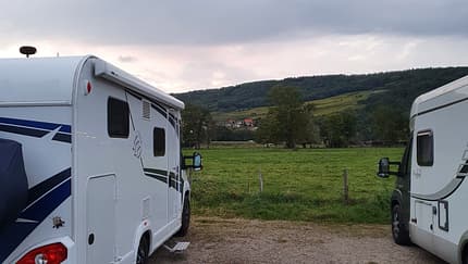 Stellplatz außerhalb von Marlenheim. Der Stellplatz liegt an einem Weingut und an einem Bauernhof. Überwiegend ebener Platz. Befestigter und geschotterter Untergrund mit Wiese. Zentrum zu Fuß erreichbar. Am Platz: Hunde erlaubt. Einkehr obligatorisch.
