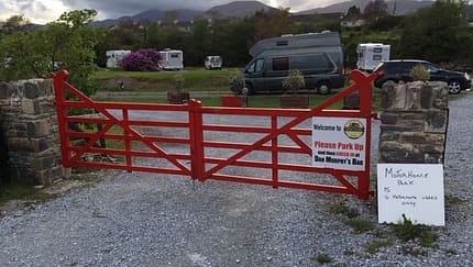Gebührenpflichtiges Stellplatz für 30 Mobile in Sneem. Der Stellplatz liegt in Flussnähe. Überwiegend ebener Untergrund, kein Schatten. Befestigter und geschotterter Untergrund. Zentrum zu Fuß erreichbar. Am Platz: Video-Überwachung, Strom. In der Nähe: ausgewiesene Wanderwege. Preis pro Nacht: 15 EUR. Bezahlung: Gasthaus. Wasser, Entsorgung Grauwasser, Entsorgung Chemie-WC im Übernachtungspreis enthalten. Strom: 5 EUR/1 Tag.