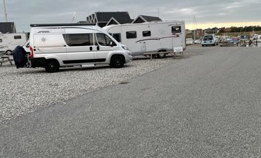 Der überwiegend geschotterte Platz Liegt Zentral im Yachthafen. Man zahlt am Automaten (175DK). Im Preis Ist Strom, WC, abwaschen mit enthalten. Wir dürften auch einen PKW mit zwei Freunden kostenlos hinter unser WoMo stellen. Der Ort als auch der Strand sind zu Fuß gut erreichbar.