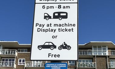 Gebührenpflichtiges Stellplatz für 10 Mobile in Dover. Der Stellplatz liegt auf einem Parkplatz. Am Platz: Video-Überwachung, Stellplatz beleuchtet, WC.