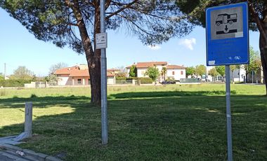 Gebührenfreier Stellplatz für 5 Mobile in San Miniato. Der Stellplatz liegt auf einem Parkplatz.
