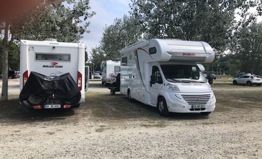 Gebührenfreier Stellplatz für 5 Mobile in San Giovanni In Marignano. Der Stellplatz liegt auf einem Parkplatz. Überwiegend ebener, teilweise schattiger Platz. Befestigter Untergrund. Am Platz: Stellplatz beleuchtet.