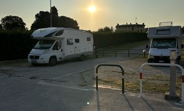 Gebührenfreier Stellplatz für 10 Mobile am Ortsrand von Bassano del Grappa. Überwiegend ebener, teilweise schattiger Platz. Befestigter und asphaltierter Untergrund. Zentrum zu Fuß erreichbar. Am Platz: Video-Überwachung, Hunde erlaubt. In der Nähe: Altstadt. Maximaler Aufenthalt: 1 Nacht.