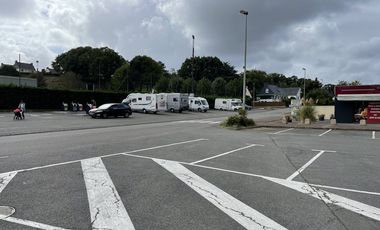 Gebührenfreier Stellplatz für 15 Mobile in Arzal. Der Stellplatz liegt auf einem Parkplatz. Maximaler Aufenthalt: 1 Nacht.