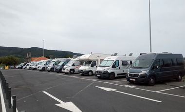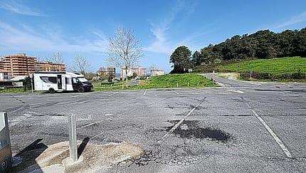 Gebührenpflichtiges Stellplatz für 40 Mobile in Bakio. Der Stellplatz liegt in Meernähe und auf einem Parkplatz. Überwiegend ebener Platz. Befestigter Untergrund. Preis pro Nacht inklusive zwei erwachsener Personen: 15 Euro. Wasser, Entsorgung Grauwasser, Entsorgung Chemie-WC, Hunde im Übernachtungspreis enthalten.