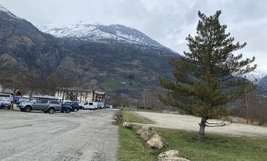 Gebührenfreier Stellplatz für 10 Mobile in La Rosiere. Der Stellplatz liegt auf einem Parkplatz.