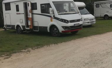 Gebührenfreier Stellplatz für 10 Mobile in Champtoceaux. Der Stellplatz liegt am Bad. Überwiegend ebener, teilweise schattiger Platz. Geschotterter Untergrund. Zentrum zu Fuß erreichbar. Am Platz: Strom. In der Nähe: Freibad, ausgewiesene Wanderwege. Wasser, Entsorgung Grauwasser, Entsorgung Chemie-WC, WC, Hunde im Übernachtungspreis enthalten. Strom: 5 EUR/Tag.