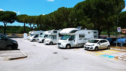 Gebührenfreier Stellplatz für 5 Mobile am Ortsrand von Castiglione della Pescaia. Der Stellplatz liegt auf einem Parkplatz. Teilweise unebener und teilweise schattiger Platz. Befestigter und asphaltierter Untergrund. Zentrum zu Fuß erreichbar. Am Platz: E-Auto Ladesäulen. In der Nähe: Strand. Hunde im Übernachtungspreis enthalten. Anreise bis 24 Uhr. Saison: ganzjährig.