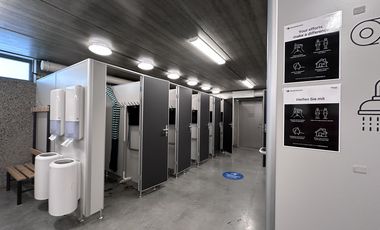 Sanitär und Wäsche auf dem Platz | |