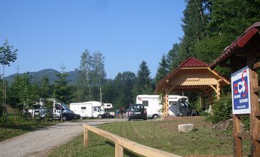 Gebührenpflichtiges Stellplatz für 16 Mobile am Ortsrand von Dolenjske Toplice. Der Stellplatz liegt im Wald bzw. am Waldrand. Geschotterter Untergrund. Zentrum zu Fuß erreichbar. Am Platz: WLAN, Strom, Dusche, Hunde erlaubt. In der Nähe: Beauty und Wellness, Freibad. Preis pro Nacht: 12 EUR. Wasser, Entsorgung Grauwasser, Entsorgung Chemie-WC im Übernachtungspreis enthalten. Strom: 5 EUR/1 Tag. Saison von Mitte April bis Anfang Oktober.