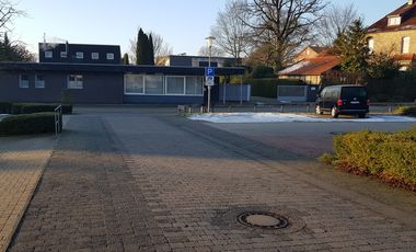 Gebührenfreier Stellplatz für 3 Mobile in Saerbeck-Westladbergen. Der Stellplatz liegt an einer Gaststätte und auf einem Parkplatz. Überwiegend ebener Platz. Am Platz: Frischwasser.