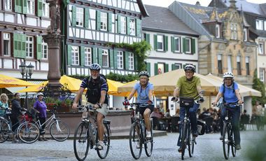- Der historische Marktplatz von Bretten beeindruckt mit seinen Fachwerkhäusern und dem imposanten Melanchthon-Denkmal.