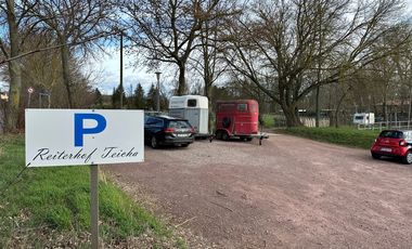 Gebührenfreier Stellplatz für 6 Mobile in Petersberg-Teicha. Überwiegend ebener Platz. Am Platz: WLAN, WC. Strom im Übernachtungspreis enthalten. Voranmeldung notwendig bitte per Telefon oder E-Mail kontaktieren.