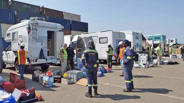 Endlich können wir das Wohnmobil im Hafen von Cartagena abliefern. Natürlich müssen auch hier wieder die verschiedensten Papiere ausgefüllt, überprüft und abgezeichnet werden, bis endlich Reederei, Polizei und Zoll alles abgehakt haben. Und das alles bei "herrlichstem" Sonnenschein, ohne jeglichen Sonnenschutz und über endlose Stunden. Nicht anders bei der Drogenkontrolle am Tag darauf. Zwei Polizisten mit Hunden überprüfen stundenlang alle Fahrzeuge der Gruppe.