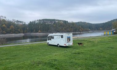 Campingplatz nordwestlich von Pilsen für 100 Campingfahrzeuge an einer Talsperre. Ebene Wiese auf drei Ebenen, üblicher Platzservice, Restaurant, Bistro, Sportanlagen, Tretboote.