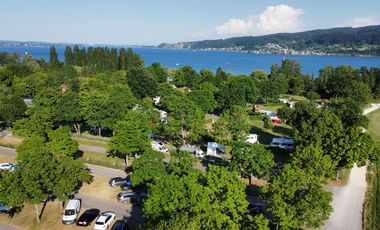 Etwa zwölf Kilometer von Konstanz entfernt liegt der Platz mit Strandbad unmittelbar am Wasser. Ein Linienbus verkehrt nach Konstanz: