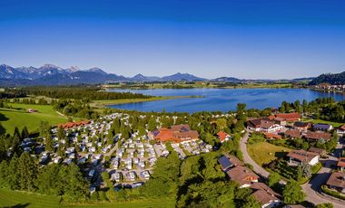 Der Campingplatz Hopfensee im Allgäu grenzt direkt an den Hopfensee und eignet sich ebenfalls fürs komfortable Wintercamping inklusive Wellness, eigener Liftanlage und Rodelhang. Der großzügige Platz hat ein Hallenbad mit Kinderbecken und einen Wellnessbereich mit unterschied- lichen Saunen. Es werden Wellnesspakete und Physiotherapie angeboten. Der Lift des Campingplatzes eignet sich für Anfänger und Kinder. Kleinere Skigebiete wie Buchenberg und Breitenberg erreicht man in wenigen Minuten. Direkt vom Campingplatz geht es auf die Langlaufloipe oder zum Winterwandern. Für jüngere Kinder gibt es ein Indoor-Spieleparadies und für ältere Kinder einen Jugendraum. Das historische Städtchen Füssen ist knapp fünf Kilometer entfernt, und nur etwa doppelt so weit ist es zum weltberühmten Schloss Neuschwanstein.