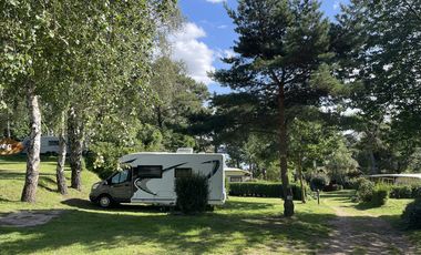 Gebührenpflichtiger Stellplatz für 34 Mobile außerorts vor einem Campingplatz. Teilweise uneben, kein Schatten, beleuchtet. Auf Rasengitter. Am Platz: Brötchenservice, Imbiss. Preis pro Nacht: ab 18,50 Euro. Entsorgung Grauwasser, Hunde im Übernachtungspreis enthalten. Strom: 4 Euro/Tag, Wasser: 1 Euro/70 Ltr., Entsorgung Chemie-WC: 3 Euro. V+E für Durchreisende: 5 Euro. Maximaler Aufenthalt: 2 Nächte. Saison von Anfang März bis Mitte September.