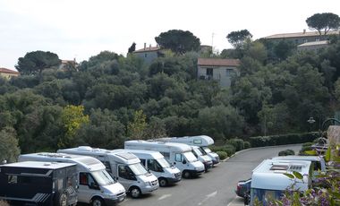 Gebührenfreier Stellplatz für 10 Mobile auf einem Parkplatz am Ortsrand von Bormes-Les-Mimosas. Ein User lobt die "schöne Lage" aber gibt zu bedenken, dass der Platz für Wohnmobile etwas problematisch ist, da die "Zu- und Abfahrt sehr steil" und die Unebenheiten auf den Stellflächen "mit normalen Auffahrkeilen nicht auszugleichen" ist.