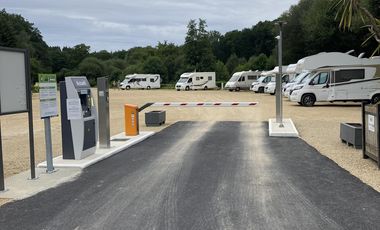 Gebührenfreier Stellplatz für 6 Mobile auf einem Parkplatz. Maximaler Aufenthalt: 1 Nacht. Ganzjährig nutzbar.