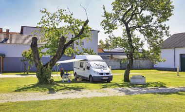 - Stellplatz: Gebührenpflichtiger Stellplatz für 10 Mobile in einem Innenhof in Ortsmitte. Für große Fahrzeuge auf Anfrage. Überwiegend ebener, teilweise schattiger Platz. Untergrund: Wiese. V+E im Winter nicht verfügbar. Sanitärcontainer. Frühstücksservice. Servicecheck für Fahrräder. Zum Bäcker und zur Eisdiele 300 m. Saison: ganzjährig.