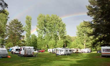 Anders als es der Name andeutet, hat der Caravanplatz spezielle Stellflächen für Wohnmobile und ein großes Gelände für Zelte. Ein mit Quellwasser gespeistes Naturfreibad grenzt direkt an.