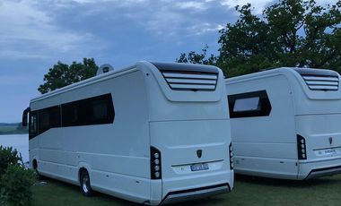 - Service: Strom, Frischwasser, Entsorgung Grauwasser und Chemie-WC, Dusche, WC, beleuchtet, Bistro, Rufbus.
