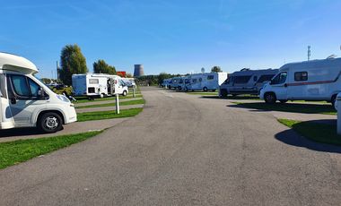 Stellplatz: Gebührenpflichtiger Stellplatz für 66 Mobile im Stadtgebiet, Sportanlagen angrenzend. Ebener, geschotterter Untergrund, mit Rasenstreifen parzelliert, beleuchtet, von einem Erdwall geschützt. Historisches Zentrum in 1,8 km zu Fuß erreichbar, ÖPNV in der Nähe. Keine Reservierung möglich! Ganzjährig nutzbar.