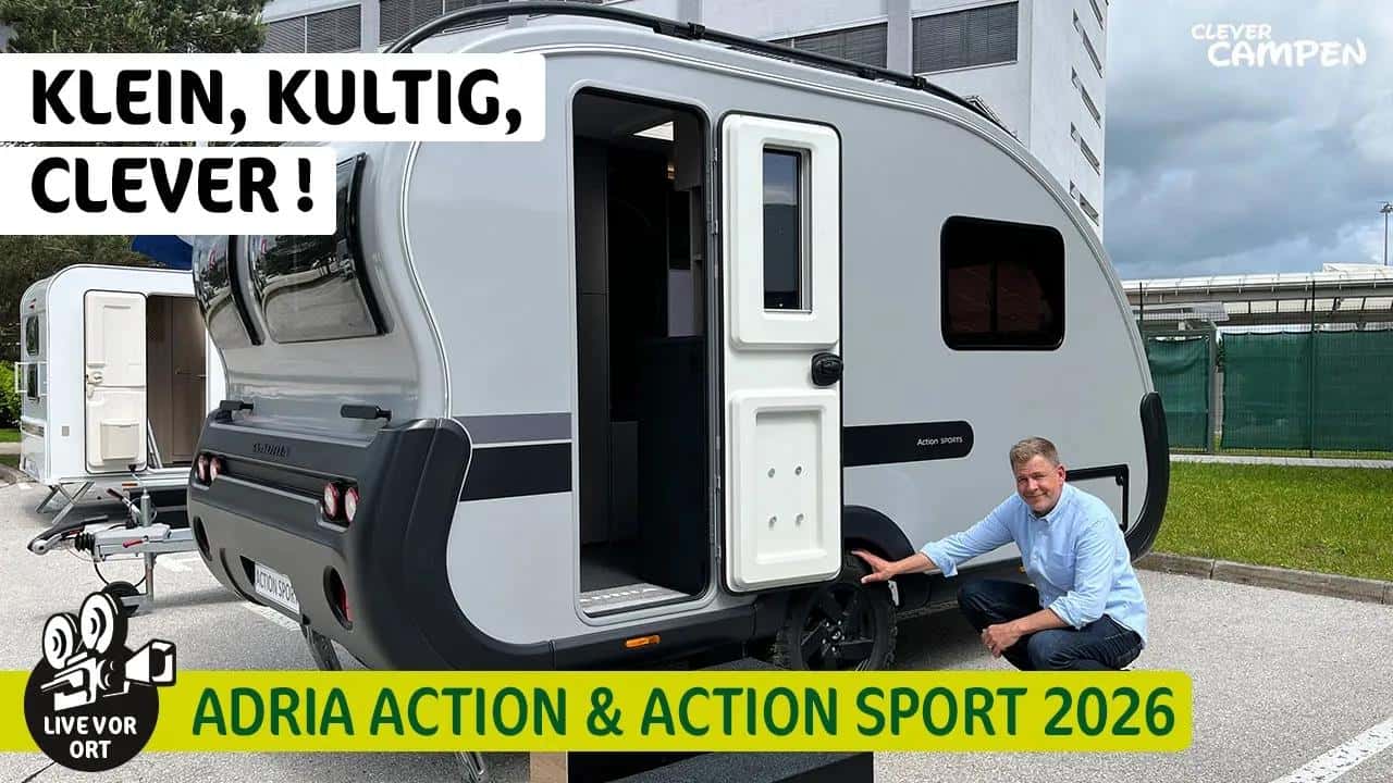 Vor exakt 20 Jahren erblickte der Adria Action das Licht der Welt und wurde für seine mutige Form gefeiert. Adria selbst war sich 2005 gar nicht sicher und plante äußerst zurückhaltend mit 50 Einheiten des Wohnwagens. Es kam anders. Der Action wurde zum Klassiker, den Adria 2019 tiefgreifend überarbeitete und um den größeren Grundriss 391 LH ergänzte. Kurz vor dem Caravan Salon, der das Modelljahr 2026 einläutet, hat der Hersteller ihn vollkommen neu konstruiert. Die unverwechselbare Form bleibt dabei bestehen, was am Anfang des Entwicklungsprozesse noch nicht sicher gewesen sein soll.