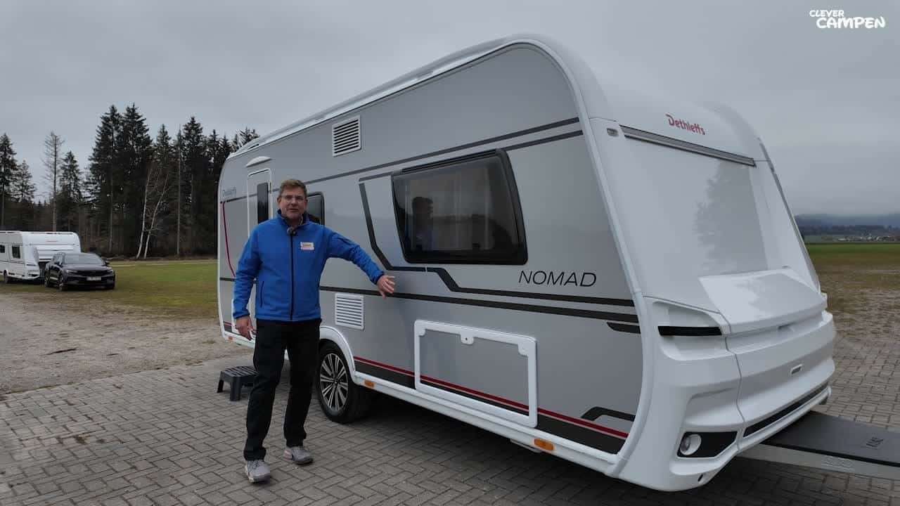Der Dethleffs Nomad, wird wie der Camper und der Beduin Scandinavia weiterhin im Allgäuer Stammwerk in Isny produziert. Anders als Beispielsweise die Baureihen C’Joy und C’Go. Es wundert daher kaum, dass diese drei Baureihen viele Gemeinsamkeiten aufweisen – wie Drillinge sind zwar auf den ersten Blick vergleichbar, doch jede Baureihe hat ihre eigenen, markanten Merkmale. Der Nomad ist dabei die optisch dezentere Variante des Camper. Im Modelljahr 2025 kostet er 2.600 Euro mehr als dieser nahe Verwandte, die zehn Grundrisse aber sind identisch. Was bekommt man also mehr fürs Geld?