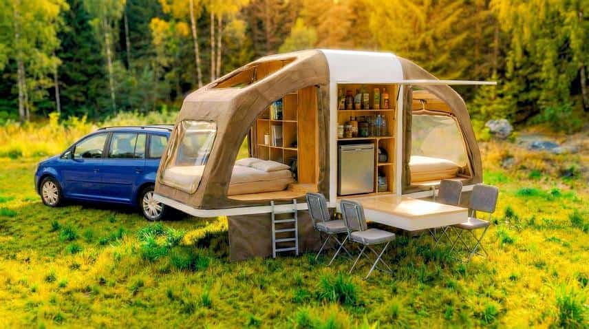 - Kein aufwendiges Einrichten: Campingutensilien müssen nicht mehr mühsam aus dem Zugfahrzeug oder einem Anhänger geholt und eingerichtet werden.