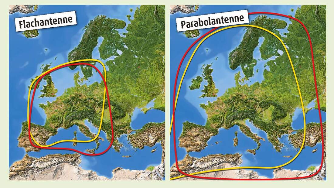 Wobei die Reichweitendiagramme keine verlässliche Aussage darüber geben, ob alle wichtigen Sender definitiv ankommen. Gerade an den Randzonen der Empfangsgebiete fallen einige Programme weg. Denn Astra und Hotbird strahlen die Sender mit unterschiedlichen Signalstärken ab.